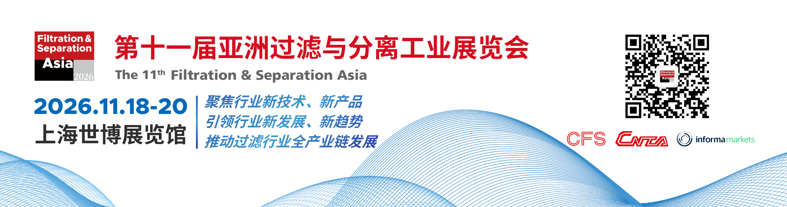 第十一届亚洲过滤与分离工业展览会(FSA2026),将于2026年11月18-20日在上海世博展览馆举行。展会由中国技术市场协会过滤与分离技术专业委员会(CFS), 上海希达科技有限公司(CNTA), Informa Markets 共同主办。展品范围涵盖过滤行业全产业链,包括过滤介质、过滤材料生产设备及辅助设备、化学制剂、过滤器、过滤器生产线、测试与分析、服务及其他。凭借对过滤与分离领域的专注和深入探究,FSA已成为亚洲过滤行业的旗舰展会。